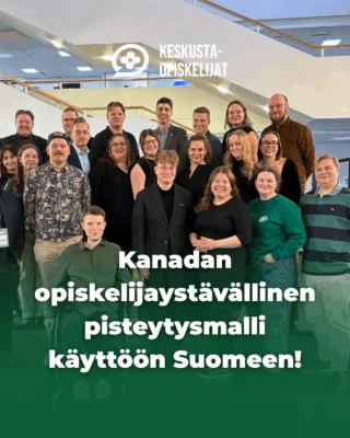 – Vastaava järjestelmä Suomessa tarjoaisi hakijoille läpinäkyvän ja ennakoitavan tavan arvioida mahdollisuuksiaan pysyvään oleskeluun jo opintojen alusta lähtien. Tämä vähentäisi epävarmuutta ja tekisi Suomesta houkuttelevamman kohteen huippuosaajille, kertoo Keskustaopiskelijoiden tuleva puheenjohtaja Aapeli Rytkönen.