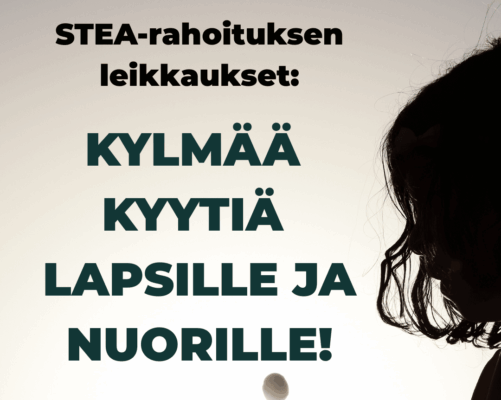 STEA-rahoituksen leikkaukset osuu niihin, joilla ei ole mahdollisuutta puolustaa itseään: Lapsiin ja nuoriin, jotka eivät pidä meteliä eivätkä marssi barrikadeille. Tukien alasajo ei säästä rahaa. Se on lasku, jonka pienituloiset perheet ja nuoret maksavat ensin, ja koko yhteiskunta pian perässä.